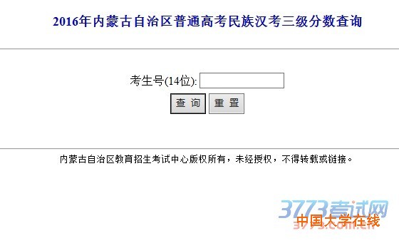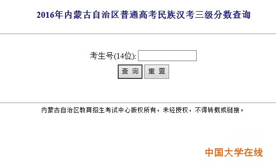 2016年内蒙古自治区普通高考民族汉考三级分数查询