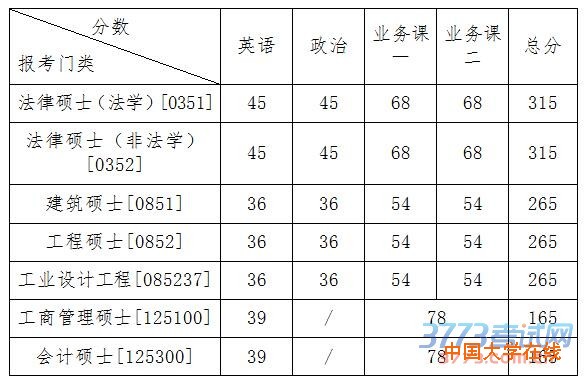 我校考生进入复试的初试成绩基本要求(专业学位类)