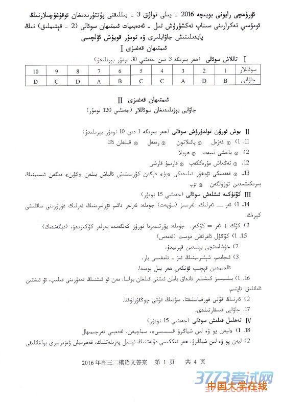 上一篇: 2016乌鲁木齐二模语文试题及答案发布