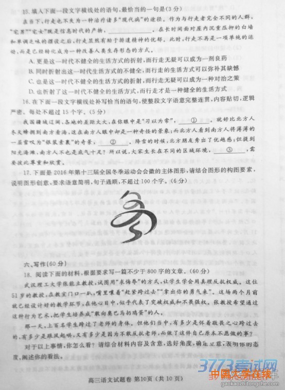 上一篇: 2016自贡二诊语文试题答案评分标准免费