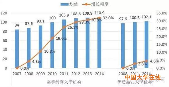 总体入学机会逐年递增,优质入学机会增长缓慢