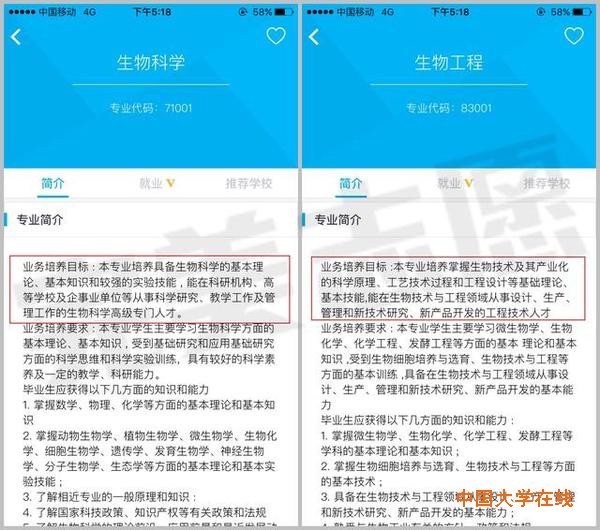 以理学专业生物科学和与之相对应的工学专业生物工程为例。从业务培养目标可以看出,生物科学专业旨在培养具有生物科学的基本理论、基本知识,能在科研机构、高等学校等从事科学研究、教学工作的高级专门人才。而工学专业生物工程则旨在培养只能怪我生物技术及其产业化的科学原理、工艺技术过程和工程设计等技能,并从事设计、生产、管理、开发的工程技术人才。