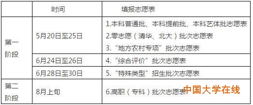 据上海市教育考试院介绍,根据《上海市教育委员会关于做好2016年上海市普通高校考试招生工作的通知》文件精神,2016年高考志愿填报分两个阶段进行,第一阶段为5月20日起填报本科志愿(其中“综合评价”批和“特殊类型”入围考生将于高考成绩公布后填报相关志愿);第二阶段为8月上旬填报高职(专科)志愿。