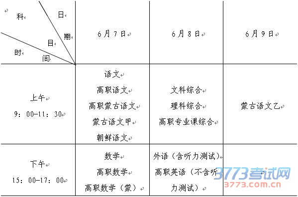 关于2016年内蒙古自治区普通高考时间安排的通知
