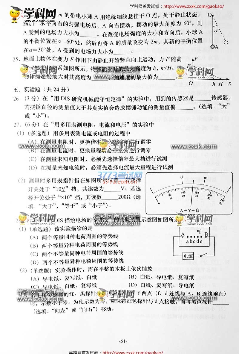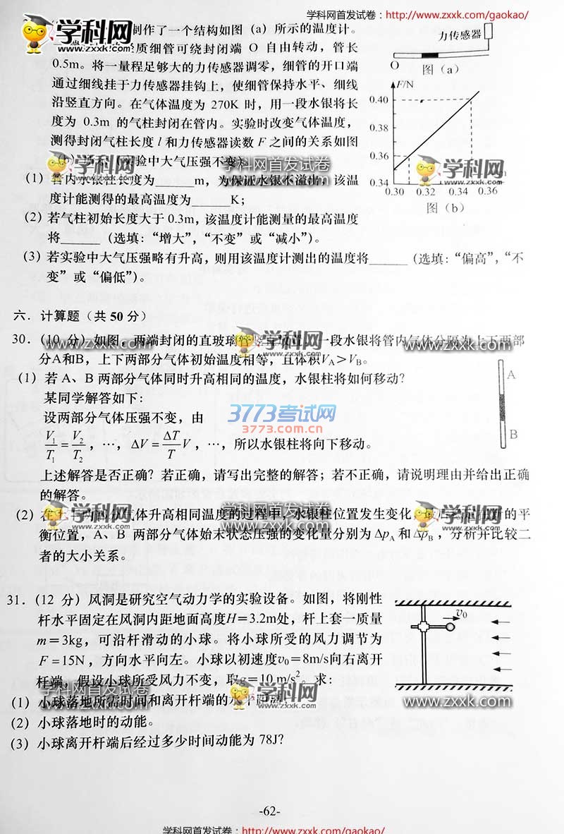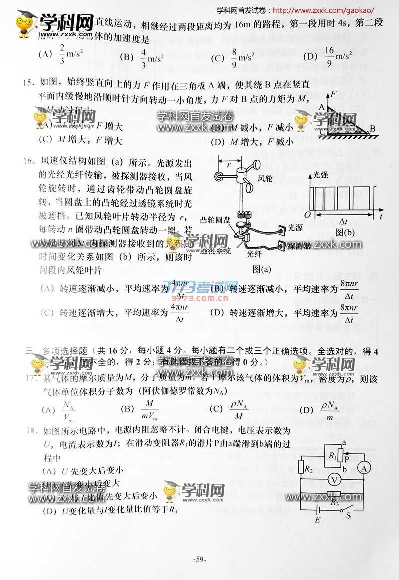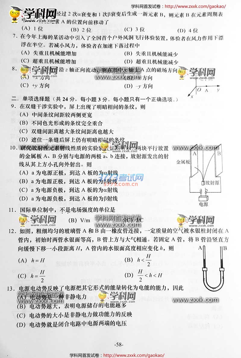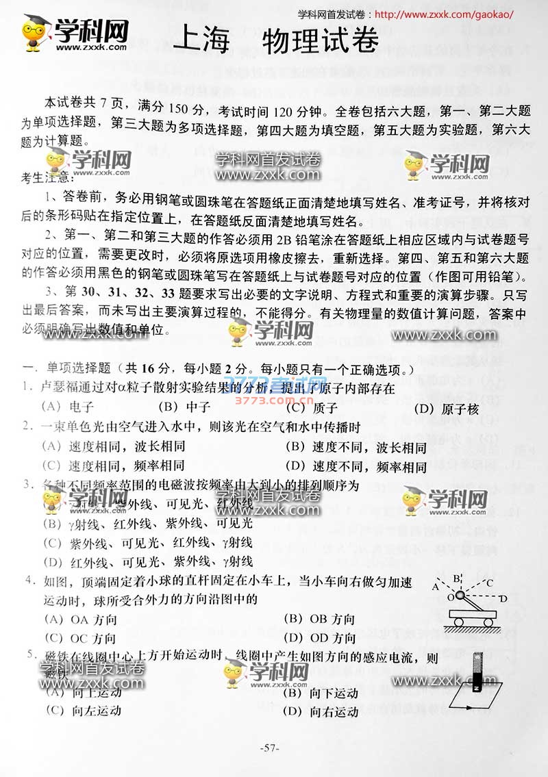 2016上海高考物理试题及答案发布