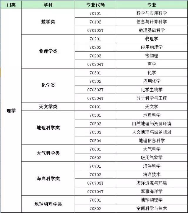教育部新本科专业目录将普通高等教育分为12个学科门类,92个专业类,506种专业,其中基本专业352种,特设专业154种。另有编号11为“军事学”学科门类预留。这12个学科门类“地位”是相同的,但包含的专业数量有多有少,相差很大。 “基本专业一般是指学科基础比较成熟、社会需求相对稳定、布点数量相对较多、继承性较好的专业。特设专业是满足经济社会发展特殊需要所设置的专业,下表专业代码有T字样即为特色专业。