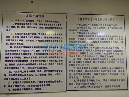 每年公安局就在这里,每个人出入要带胸卡,有任何电子器材不准进行评卷现场,特别是手机,PAD这种能够照相,上网的东西,不准带入现场,以防万一,我们还设了屏蔽仪,所有电子信号在里边是不好使的。