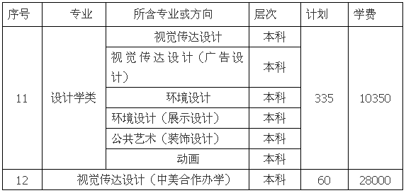 我校美术类专业分两个学院进行招生培养,其中艺术设计学院包含设计学类、视觉传达设计(中美合作办学)专业;工业设计学院包含产品设计、产品设计(中美合作办学)专业。