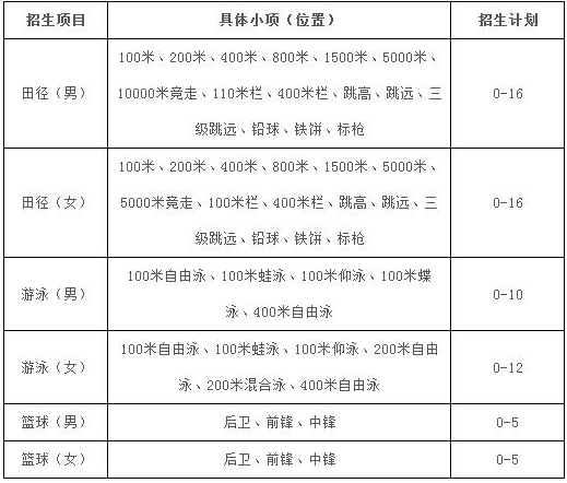 招生项目:田径、游泳、篮球。