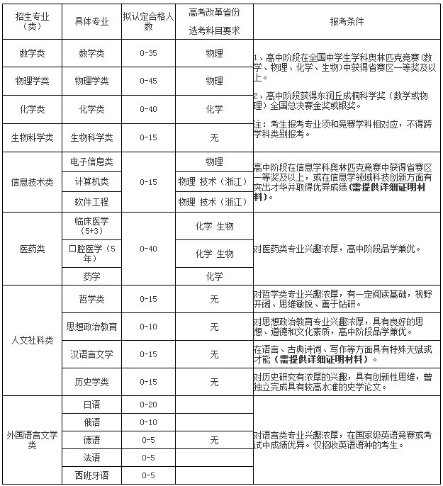 1、浙江省、上海市选考科目单科成绩优异且综合素质评价优秀的考生可报考相关专业类。