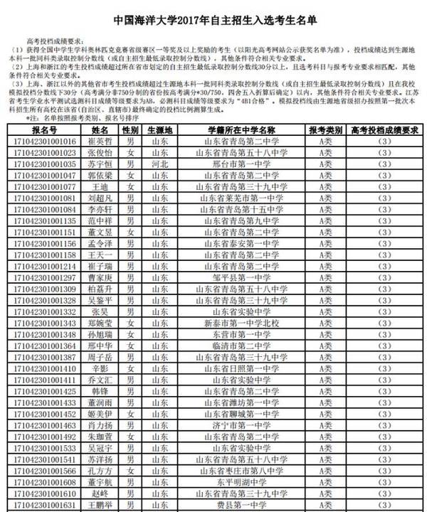 6月17日,西安交通大学、北京师范大学(珠海校区)、中南大学、中国海洋大学、苏州大学陆续2017年自主招生入选名单,如有参加测试的考生,可查询入选名单。