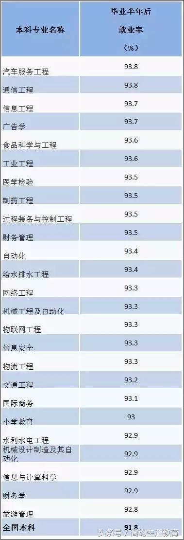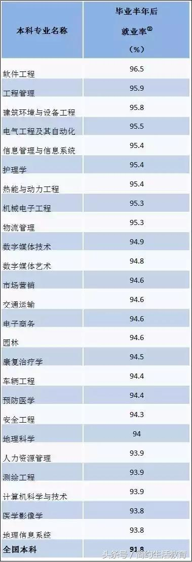 下图为2016年本科毕业生,毕业半年后的就业率排名50强。有的专业虽然就业率高,但是工作却很辛苦,考生在选择专业时应当注意,来看看有没有你的专业?