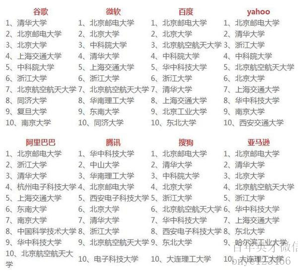 有的考生家长可能会问,各大互联网公司最受青睐哪些学校呢?我们先来看排名: