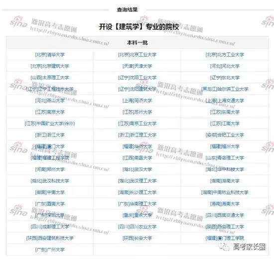 图1:开设建筑学专业的一本院校,来自高考志愿通