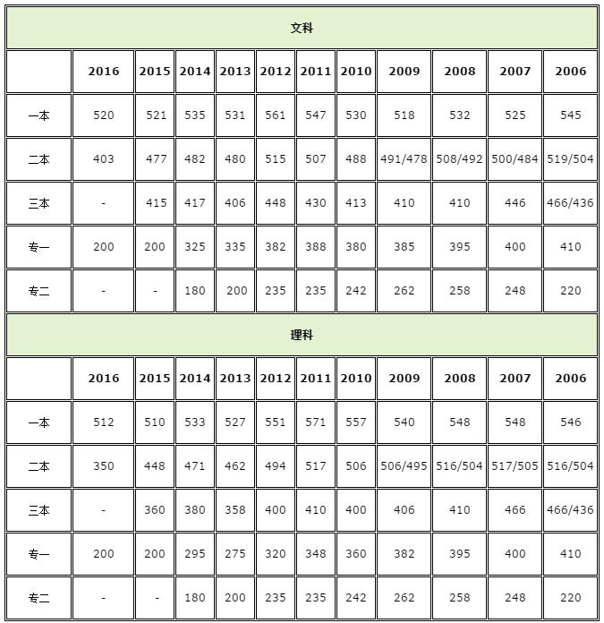 | 三本 | - | 360 | 380 | 358 | 400 | 410 | 400 | 406 | 410 | 466 | 466/436 |