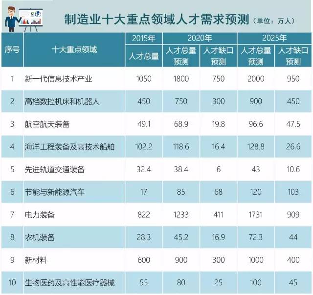 权威部门的统计显示,当前我国制造业十大重点领域对人才需求量较大,预计到2020年——