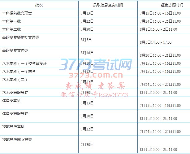 湖北省2017年普通高校招生录取信息查询和各批次填报征集志愿时间表