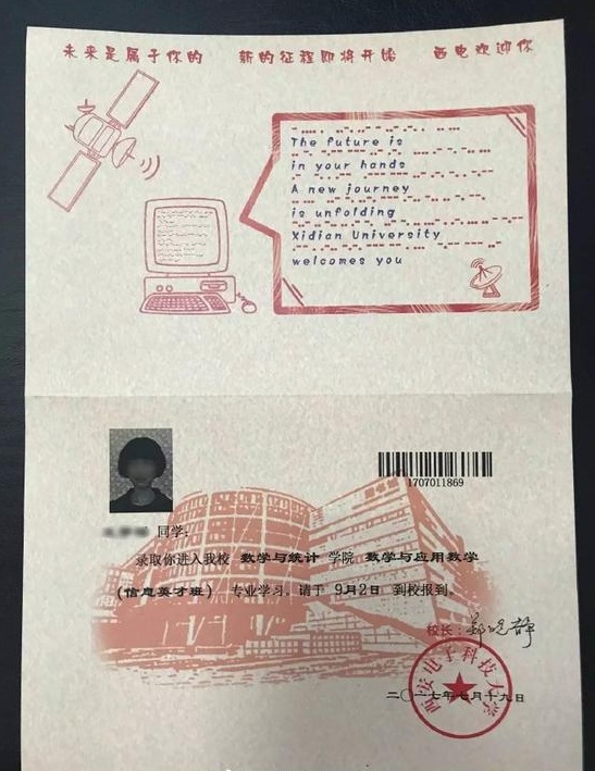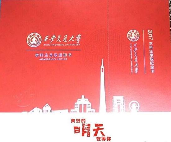 红底白字,简单朴素,却见证每一个莘莘学子凤凰涅槃的喜悦,激励着新生走向另一个成功。据了解,交大将在2017年8月19-20日兴庆湖畔进行新生报名,新生可登录EMS官网,点击“高考录取通知书”,输入14位高考考生号,查询录取通知书邮寄状态。