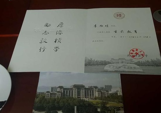 2017年的录取通知书与之前风格保持一致,主色调为绿色,象征着希望、平和、宁静,寓意着新生在金榜题名之后应该做到宁静致远,沉静下来投入到大学四年的学习生活中去,不辜负大好时光。