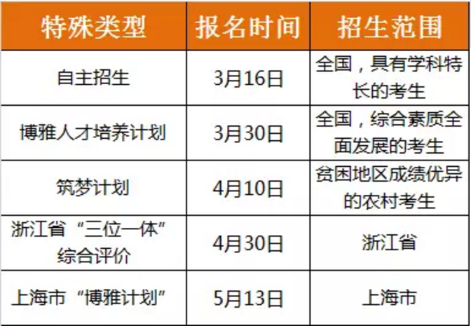 注:除了上述5种特殊招生外,北京大学2017年特殊招生还包括外语类保送生、高水平艺术团、高水平运动员队、香港地区免试生、台湾地区免试生、插班生等