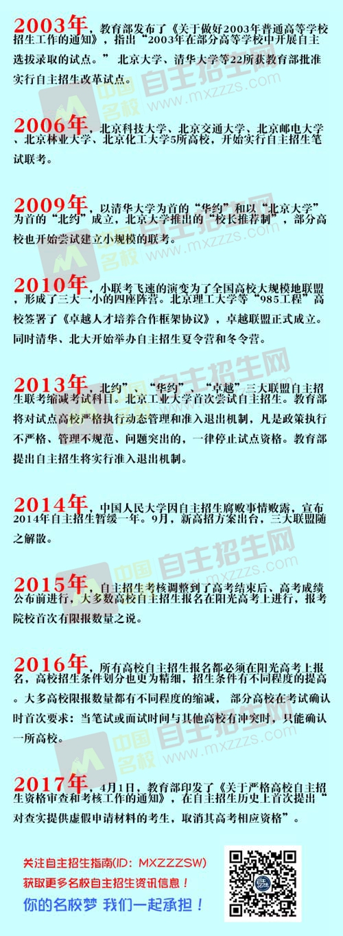 经过这些年的试点改革,今年名校自主招生选拔考试包括基础知识能力测试和学科专业能力测试,主要选拔具有学科特长和创新潜质的优秀学生。大多数学校给予的加分录取优惠大多在20~60分之间,也有部分高校将成绩要求放宽到本地“一本线”。自主招生考试结束后,高校会在6月22日前后公示自主招生最终入选名单。