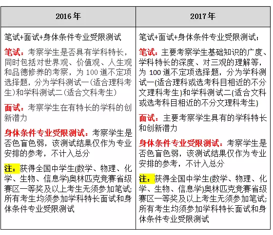 相较于16年,17年在学科特长类不再作为单独一个条件,而是与成绩进行了关联。