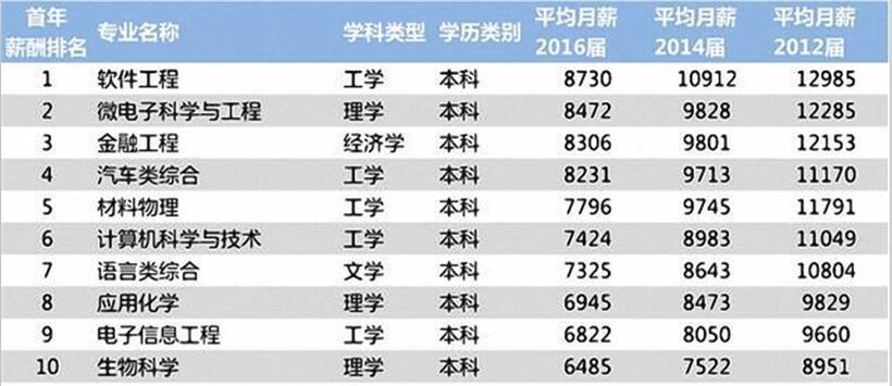 根据国内薪酬数据专业网站,以国内112所211大学毕业生为主要调查对象,采集了2012届、2014届与2016届毕业生的薪资情况,经过对各项数据进行数学化处理,得出2017本科毕业生就业薪资最高的10个专业.