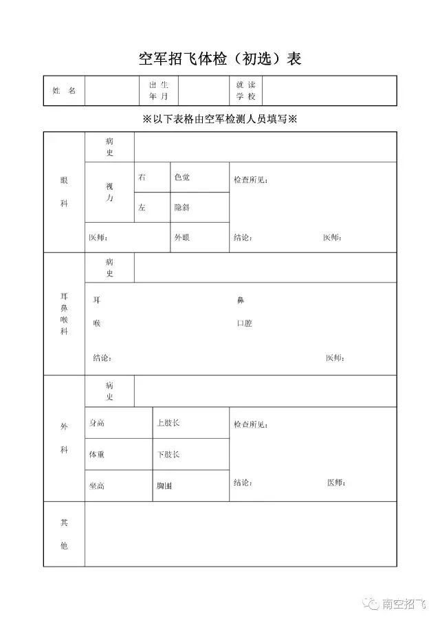 初选检测:主要有眼科(视力、外眼、隐斜)、外科、耳鼻喉科等,需要半天时间。