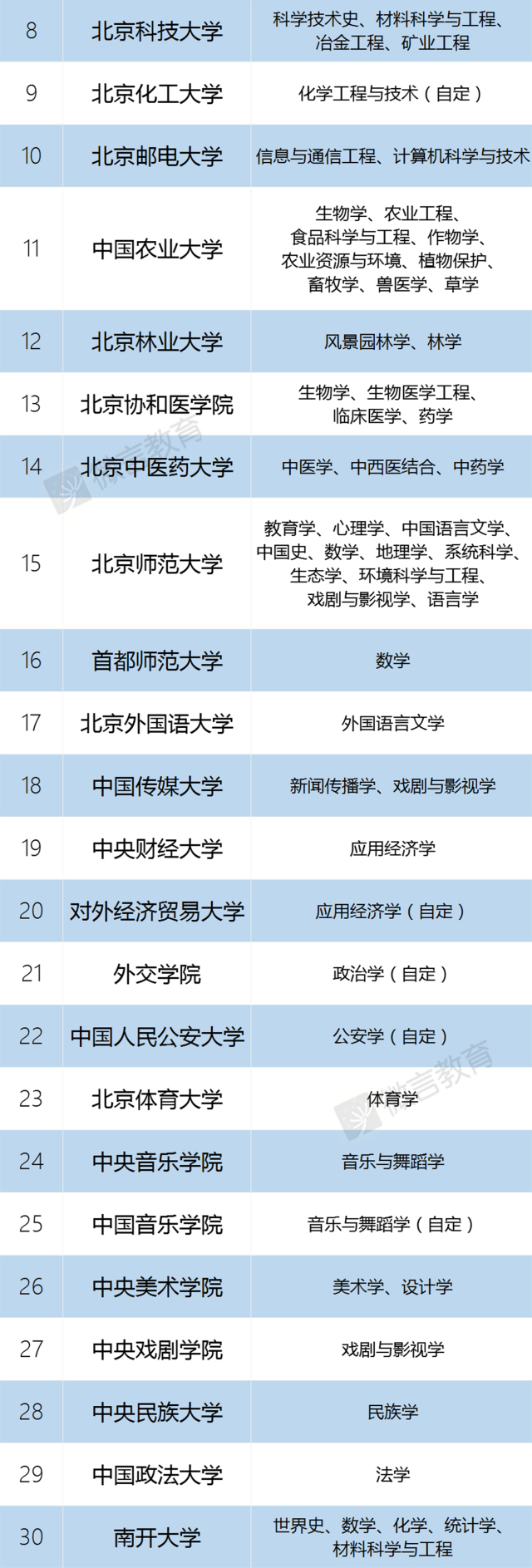 “985”大学则包括北大、清华加上复旦、南大、浙大、中国科技大、上海交大、西安交大、哈工大的9所高校以及后来加入的其他30所高校。