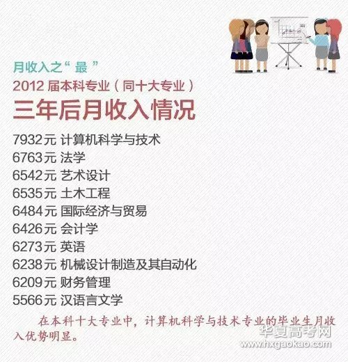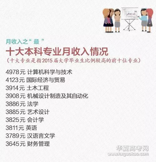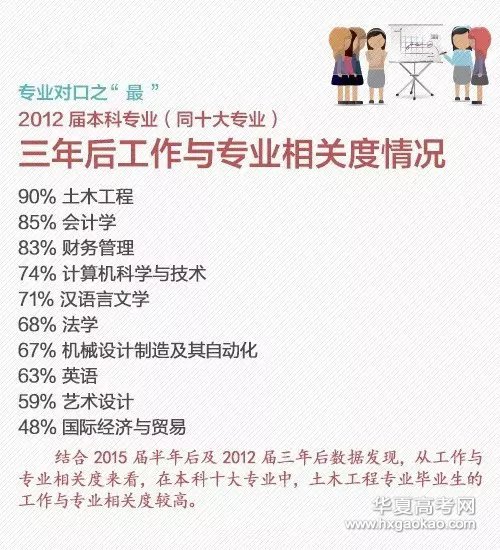2016就业蓝皮书提前曝光:2015届大学毕业生比例较高的前十位专业①财务管理和计算机科学与技术专业的就业率较高,法学就业率较低;②计算机科学与技术毕业生收入优势明显;③艺术设计和国际经济与贸易毕业生晋升比例较高…更多,戳图了解↓你们专业就业如何?快跟着华夏高考网小编一起来看看吧!