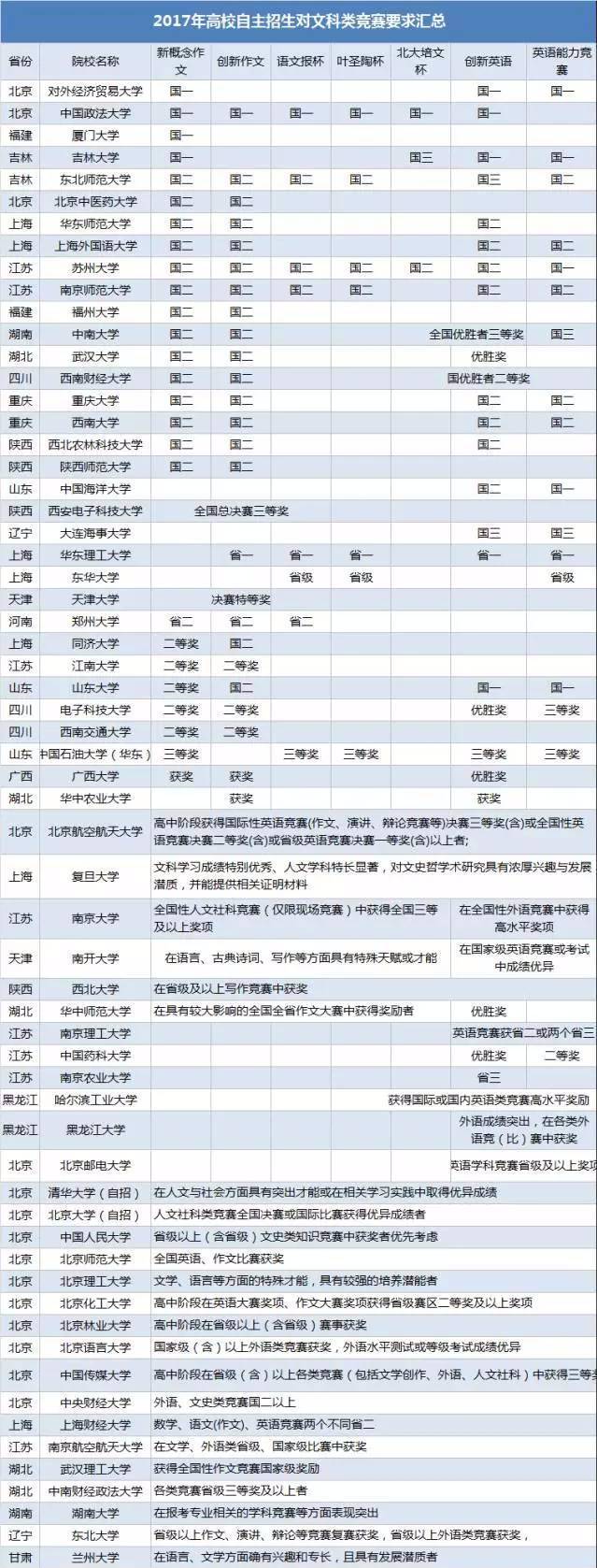 说明:2017年高校自主招生和往年类似,招生条件主要分为五大类。
