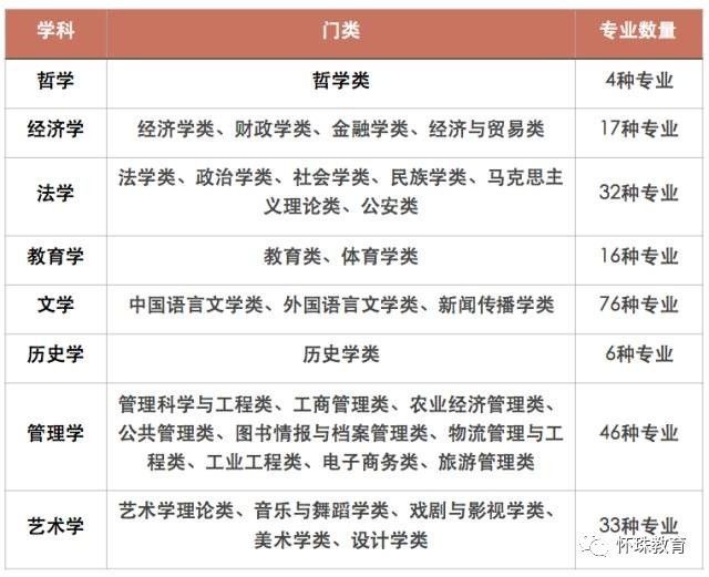 而文科涉及的只有哲学类、法学类、经济学类、马克思主义理论类、社会学类、政治学类、教育学类、心理学类、中国语言文学类、外国语言文学类、新闻传播学类、历史学类、管理学、图书档案学、艺术学、体育学等10多个类别。