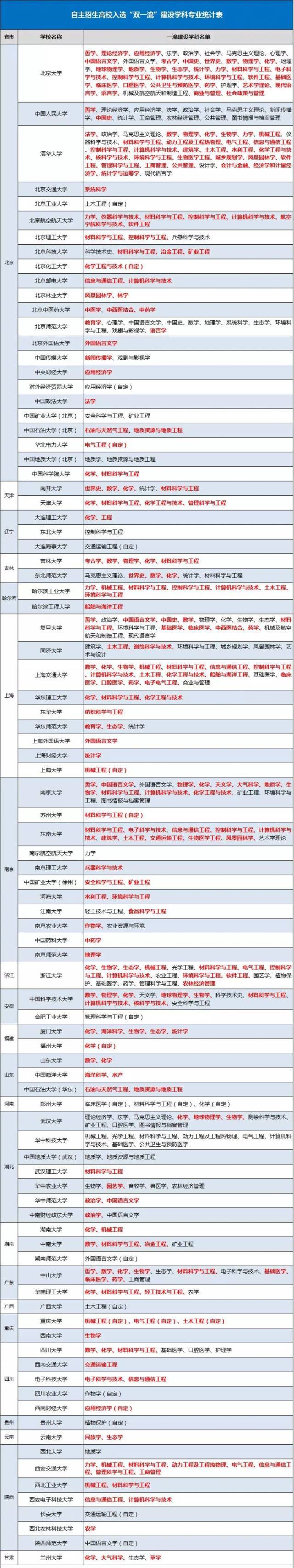 说明:1、本表统计自主招生高校入选“双一流”建设学科;