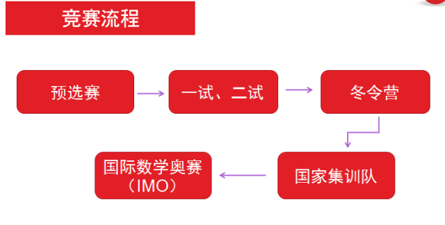 奖项评比情况:数学预选赛在各地市学校举行,评选出的奖项分为市一,市二,市三(考核优秀的同学晋级参加数学联赛);数学联赛全省在指定的一个或几个地方进行选拔考试,评选出的奖项分为省一(含省队),省二,省三(考核优秀的同学晋级参加数学决赛(冬令营));冬令营全国统一指定一个地方进行选拔考核,评选出的奖项分为国一(含集训队),国二,国三(考核优秀的同学晋级参加集训队训练,最终选出6名优秀选手代表中国参加IMO);IMO全世界在指定的一个地方进行选拔考核,评选出国际金牌,国际银牌,国际铜牌。