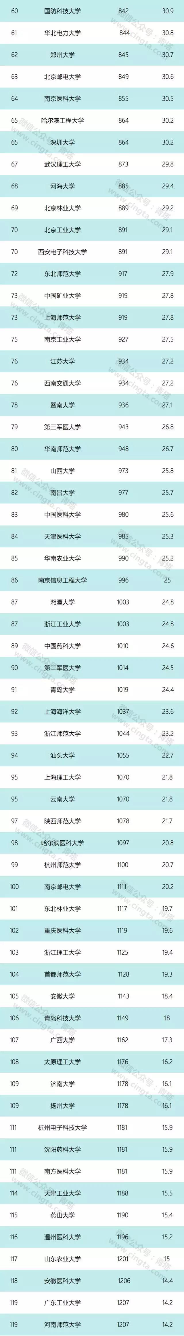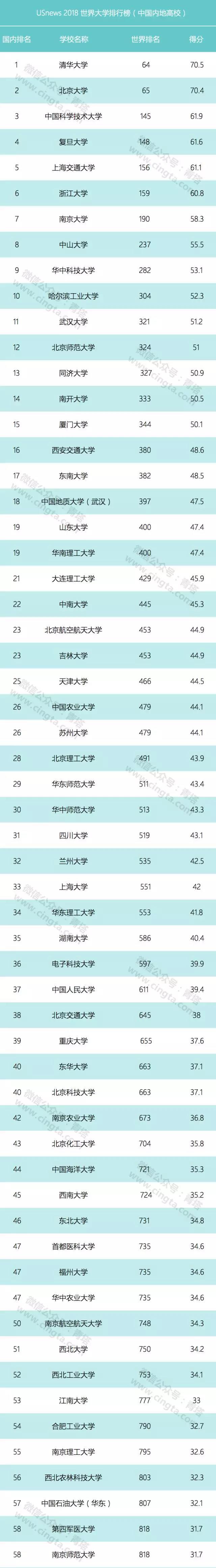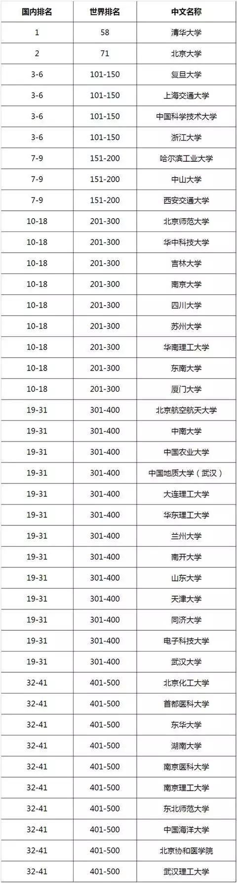 今年,中国共有59所大学进入世界一流大学名单,包括香港的6所和澳门的1所,以下是进入500强的内地高校名单: