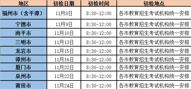 2018年福建省民航招飞初检时间安排表