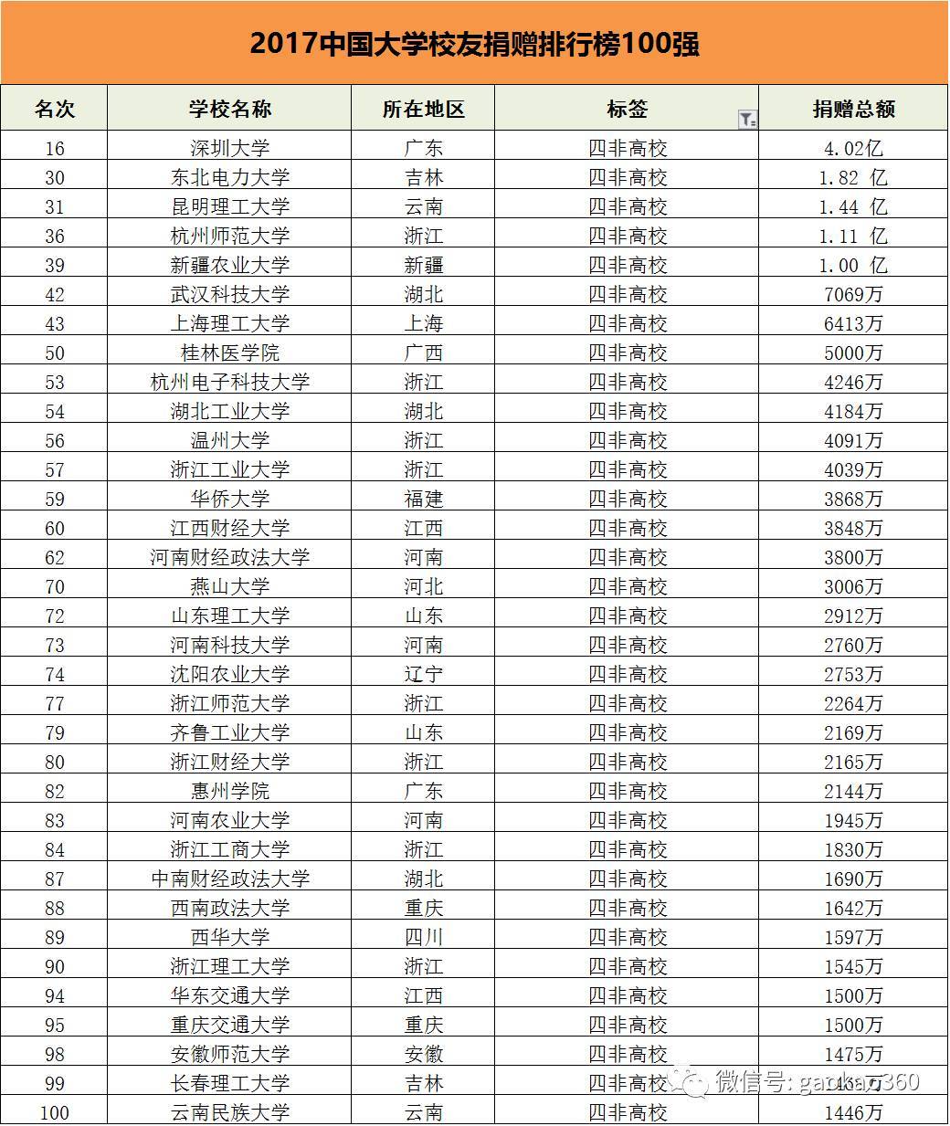 在四非高校(非985、非211、非一流大学、非一流学科)中,这些院校比较显眼。深圳大学以4亿元的校友捐赠,在四非大学中独领风骚。东北电力大学、昆明理工大学、杭州师范大学、新疆农业大学,先后杀入“亿元俱乐部”。