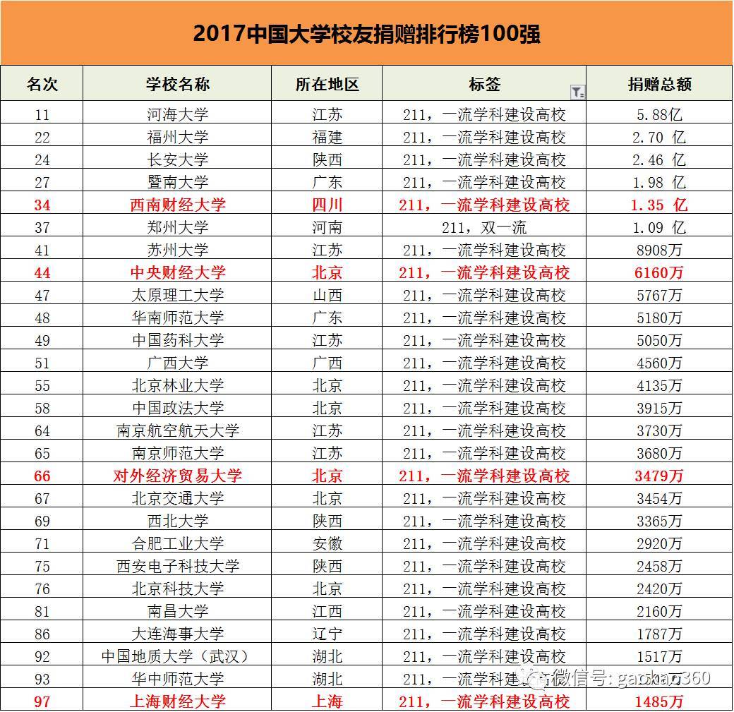 同时,也可以在此看到四所财经院校的校友捐赠数量的大差异。谁的校友更“强悍”一见高下。