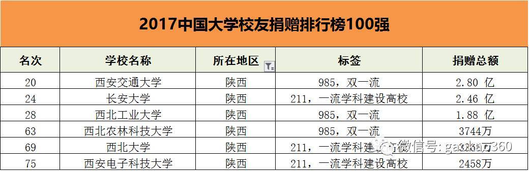 其次,在中国高校校友捐赠百强榜中,原211高校,也有收获。其中北京的院校有所上榜,江苏的院校有5所上榜,陕西的院校有3所上榜。这三个省份同时也是高等教育资源比较集中的省份。