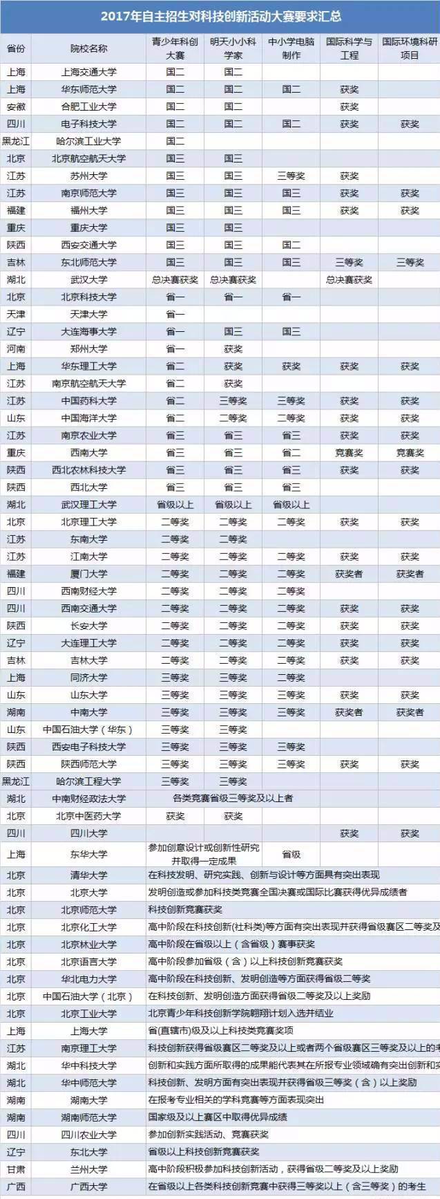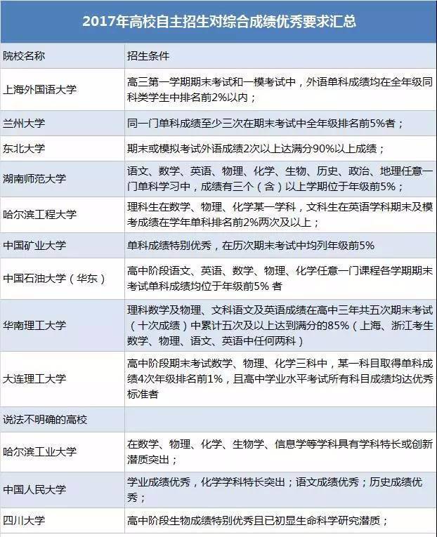 说明:2017年高校自主招生和往年类似,招生条件主要分为五大类。