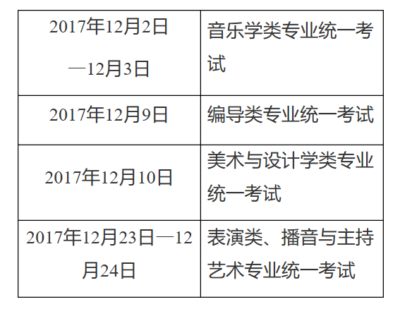 艺术类专业统考时间: