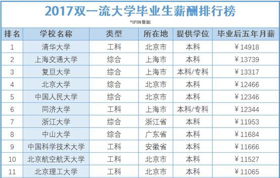 想必大家都听说了“双一流”大学,教育部重新将“985”“211”划分,新出的双一流大学的就业实力怎么样呢?看一下整理的双一流大学的毕业5年后的薪酬排行榜吧!
