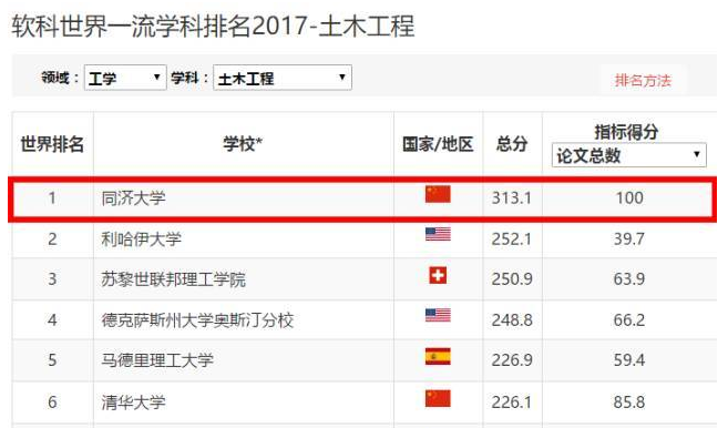 同济大学是国家“211工程”、“985工程”重点建设高校,也是收生标准最严格的中国大学之一。在2017软科世界一流学科排名中,同济大学共25个学科上榜,名列中国内地高校第10。其中,土木工程排名世界第一!