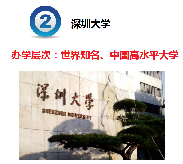深圳大学是中央、教育部和地方高度重视特区大学建设。北京大学援建中文、外语类学科,清华大学援建电子、建筑类学科,中国人民大学援建经济、法律类学科,学校办学层次由学士、硕士到博士教育。深圳大学是深圳唯一的一所综合性大学,也是深圳规模最大的一所本科院校。