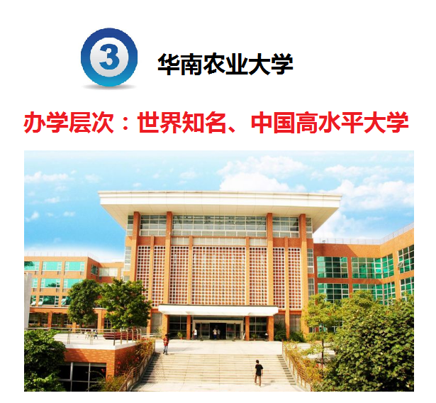 华南农业大学是广东省和国家农业部共建的省部共建大学,国家重点建设大学,也是首批广东省“九五”和“十五”期间自主重点建设的10所省级211--广东省“211工程”高校和广东高水平大学重点建设高校、国家卓越农林人才教育培养计划改革试点高校。