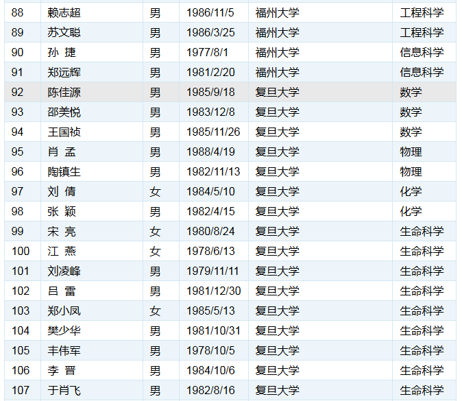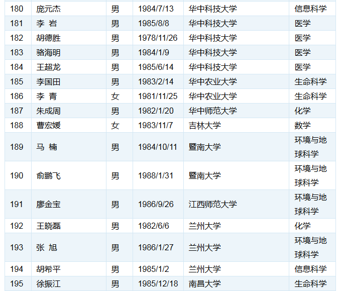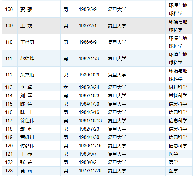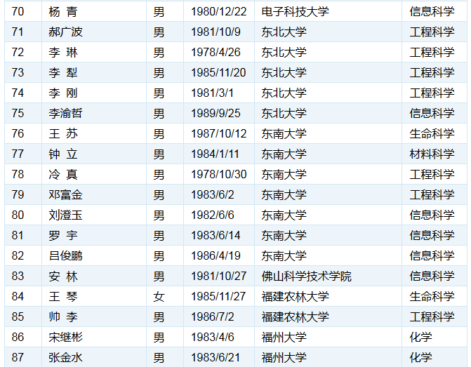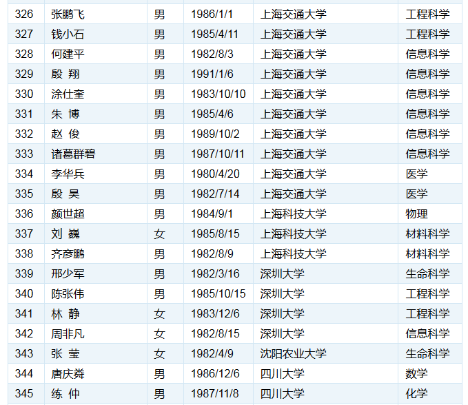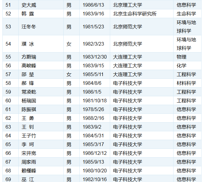以下为各单位的入选人数统计结果: