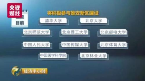 此外,教育部也在统筹整合教育资源,加大高等院校的疏解力度,截至目前,近百所在京高校中已有清华大学、北京大学、北京师范大学(珠海校区)、北京理工大学、北京邮电大学、中国人民大学、中国传媒大学、北京体育大学、中国医学科学院、北京林业大学等十余所学校相继表态,将积极参与雄安新区建设。