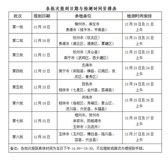 此次复选按照不同地区、不同时段分别进行。复选报到时间为各批次相应的报到日期当日下午14:00—16:30;报到地点在广西壮族自治区南宁市西乡塘区大学东路100号广西大学东25栋(一楼设有空军招飞学生报到处)。