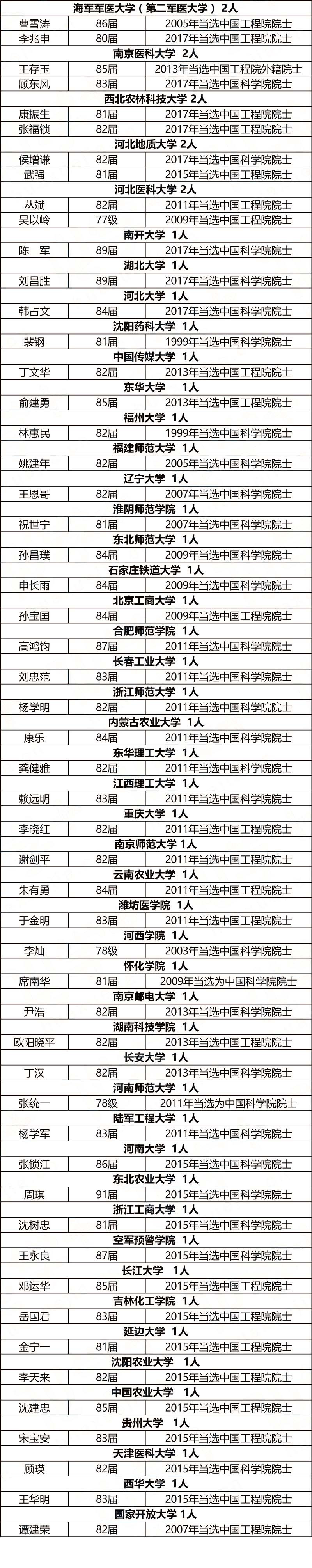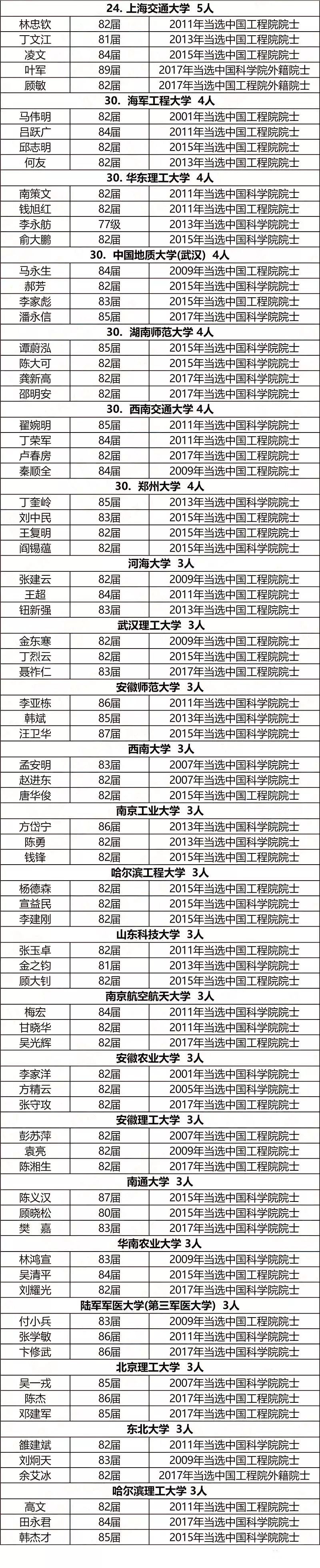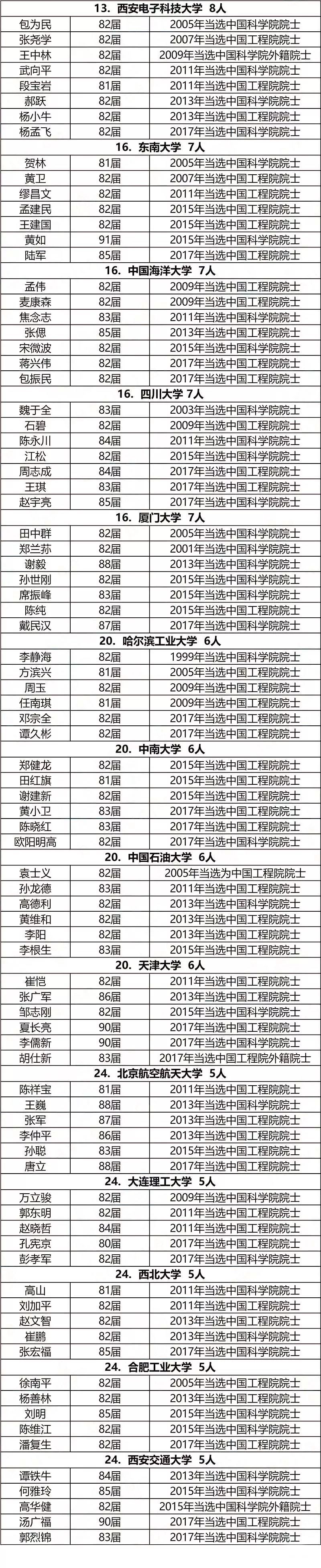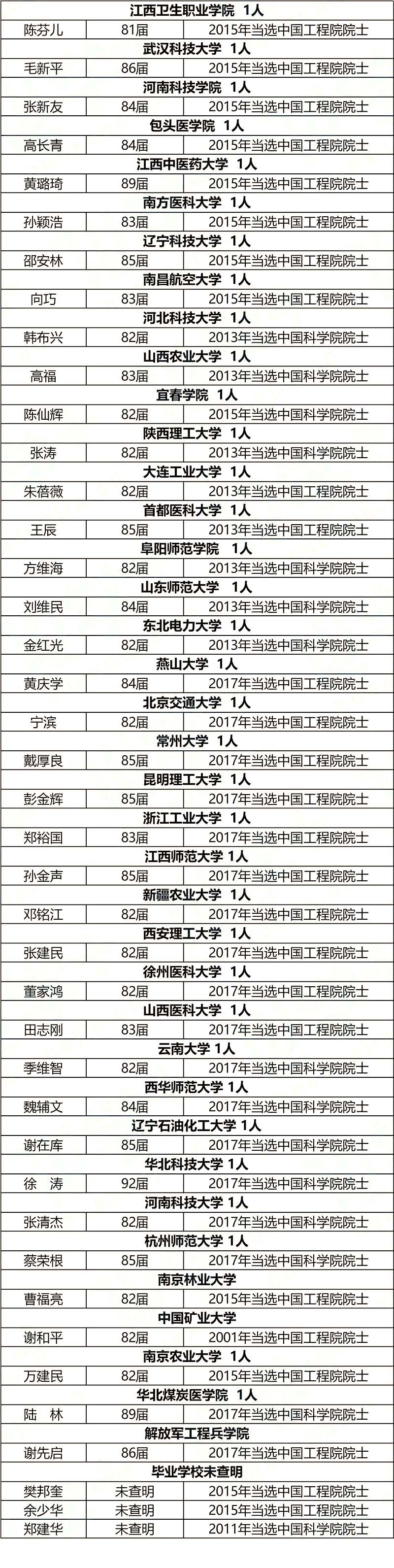 1977年恢复高考以后各大学本科教育培养出的院士校友具体名单