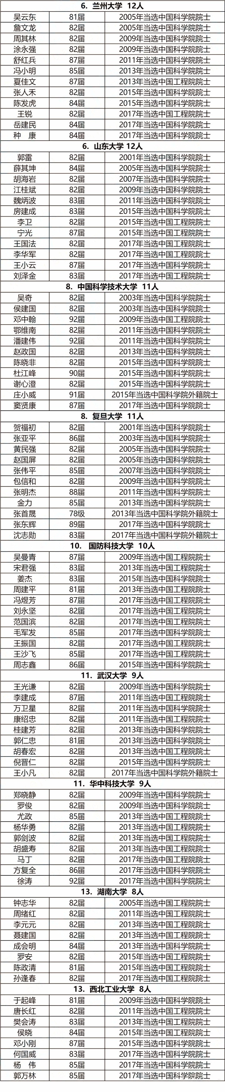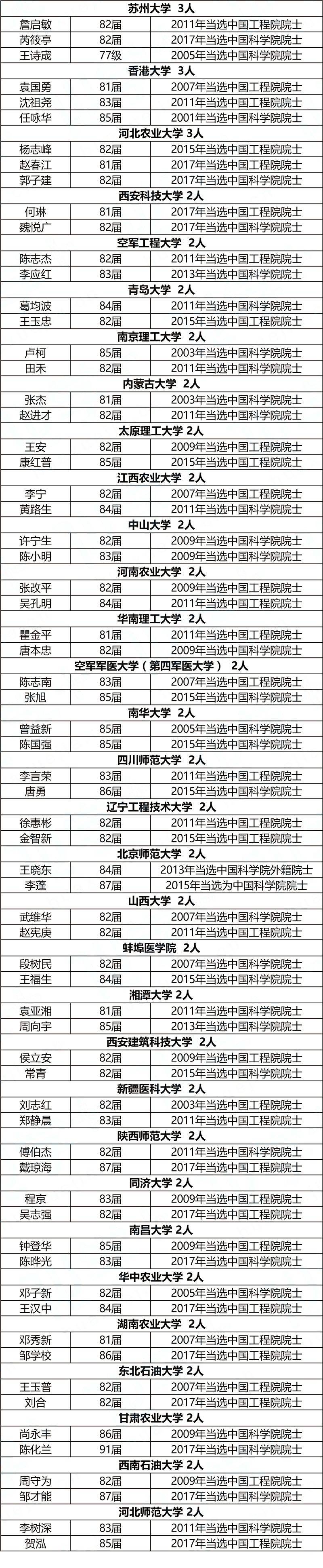 从统计数据来看,除了各大知名高校外,不少省属重点高校也不错的表现,包括西北大学、郑州大学、安徽师范大学、山东科技大学、安徽农业大学、安徽理工大学等。不过由于院士基本上只授予理工科杰出科研人才,因此财经、法律等人文社科类院校几乎没有本科生院士校友当选,当然这也并不代表这些高校人才培养质量不高。
